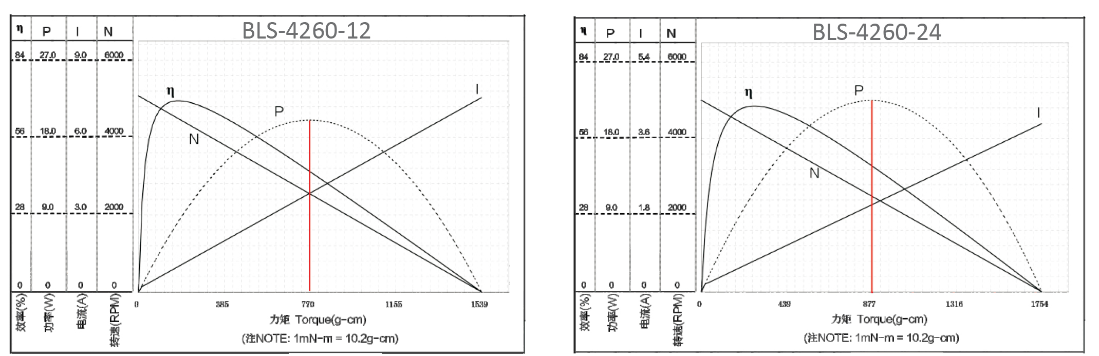 Model # | RATED Voltage | NO LOAD | AT MAXIMUM EFFICIENCY | STALL | |||||